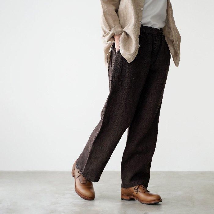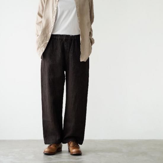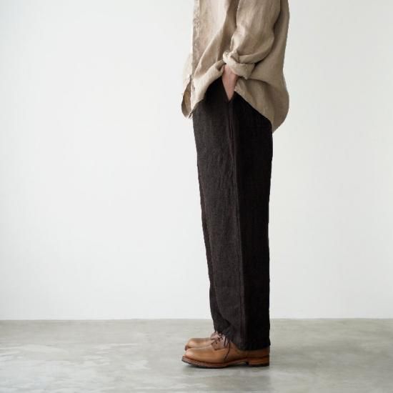 亜麻(リネン)と苧麻(ラミー)の二種類の麻を使用したストレートシルエットのパンツです。