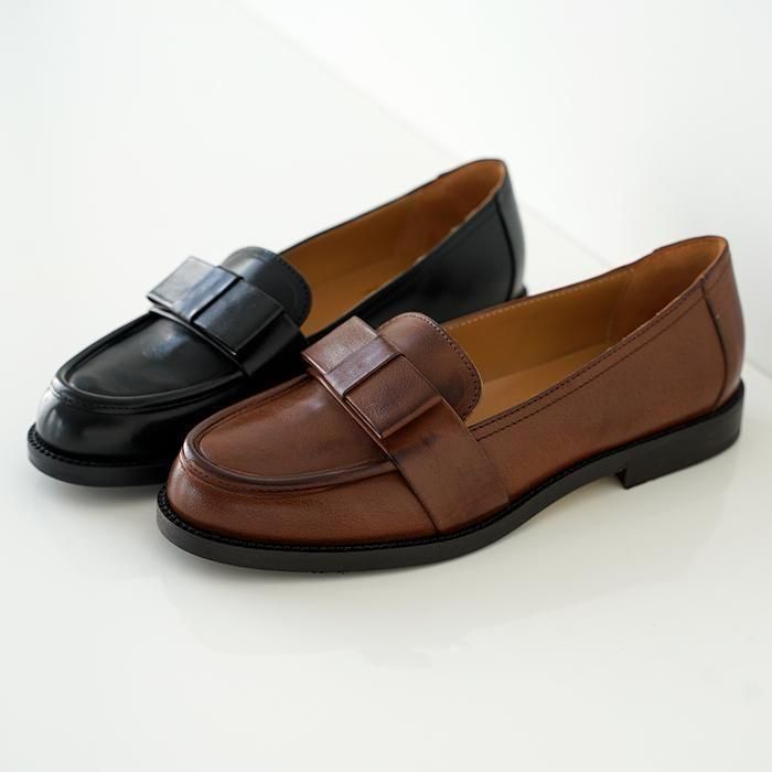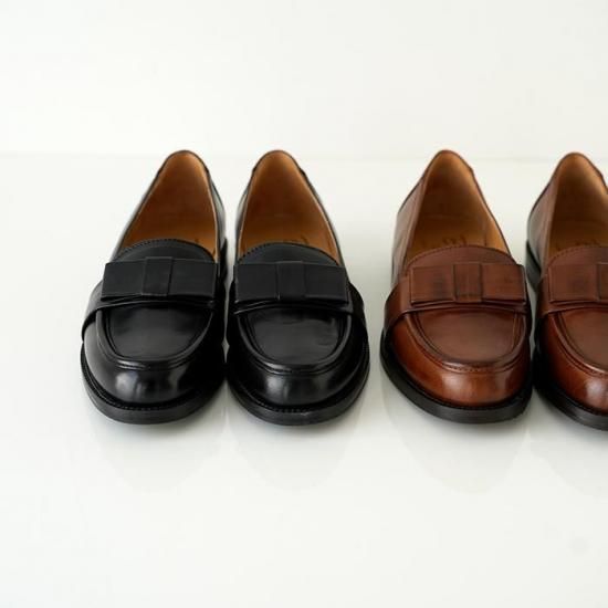 DIEGO BELLINI(ディエゴベリーニ)の大きなレザーリボンが印象的なフラットローファー。