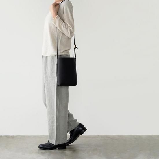 シューズにも使用しているゴートレザー(山羊革)を用いた、軽量で柔らかな縦長サコッシュです。