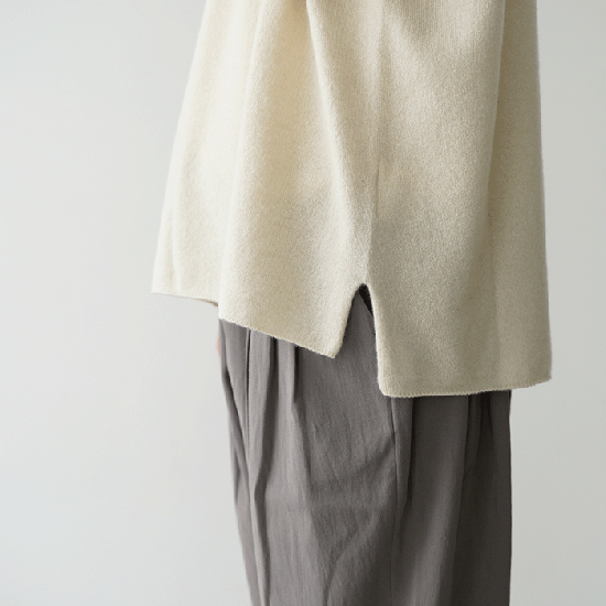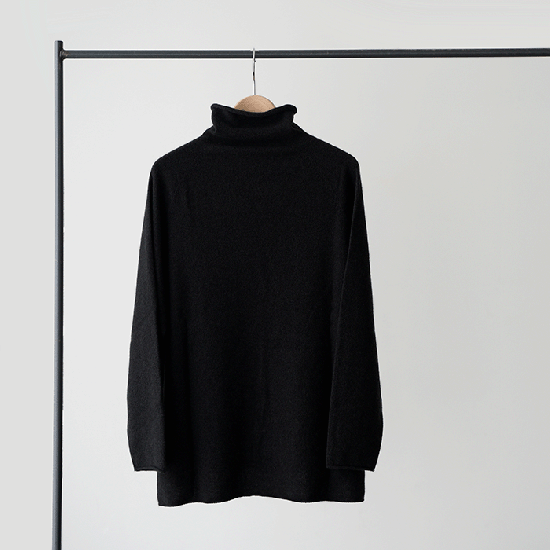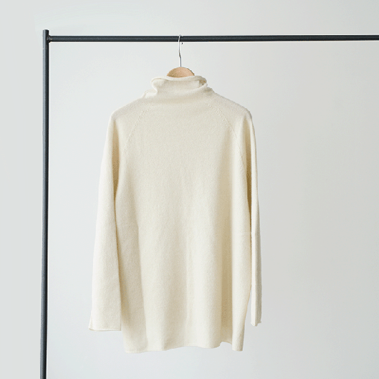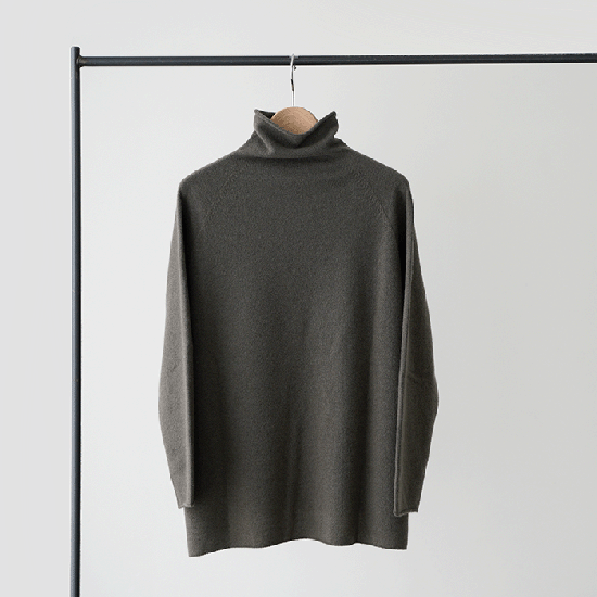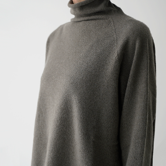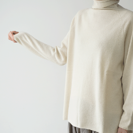 ゆるやかに首に沿うデザインのタートルネックは、ふんわりとしたやさしい着心地。