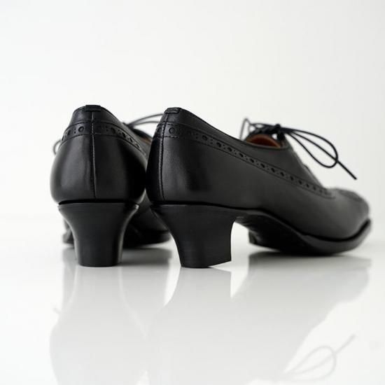 甲の高い位置でしっかりと足を支えるレースアップタイプは、ヒール靴でありながら歩き心地にも優れています。
